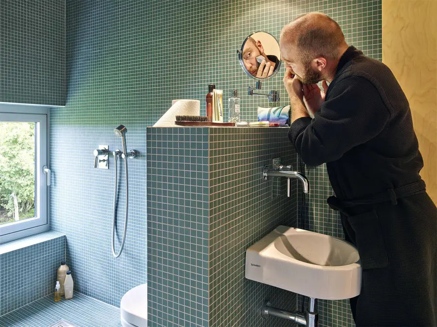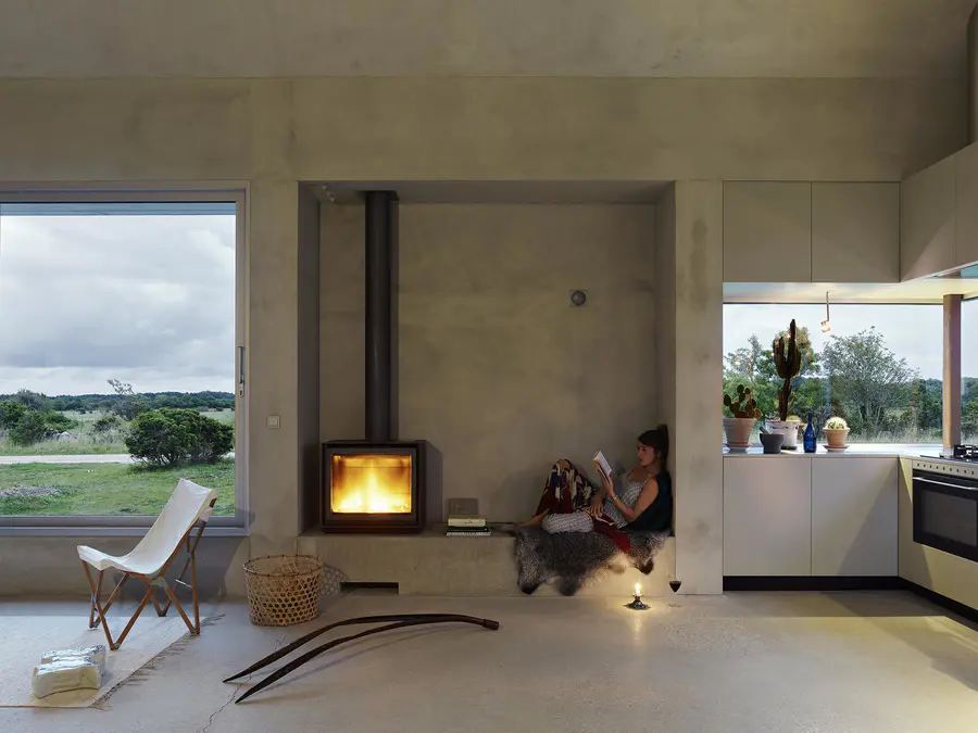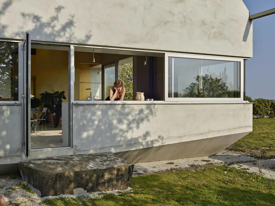 The facade is plastered in accordance with local regulations and the interior is also finished in the same material and colour. In contrast, a refined wooden volume creates visual and functional relationships between the different floors and areas of the building. The details are well-thought out and implemented with great care and skill. The house’s inspiring tactile dimension is a result of an active collaboration between architect, constructor and client.”