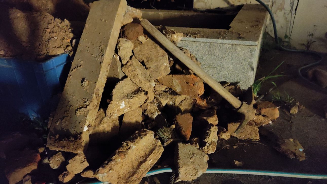 短短的一截,居然整出了一大堆石头和砖碴,今天是真的弄累了。
