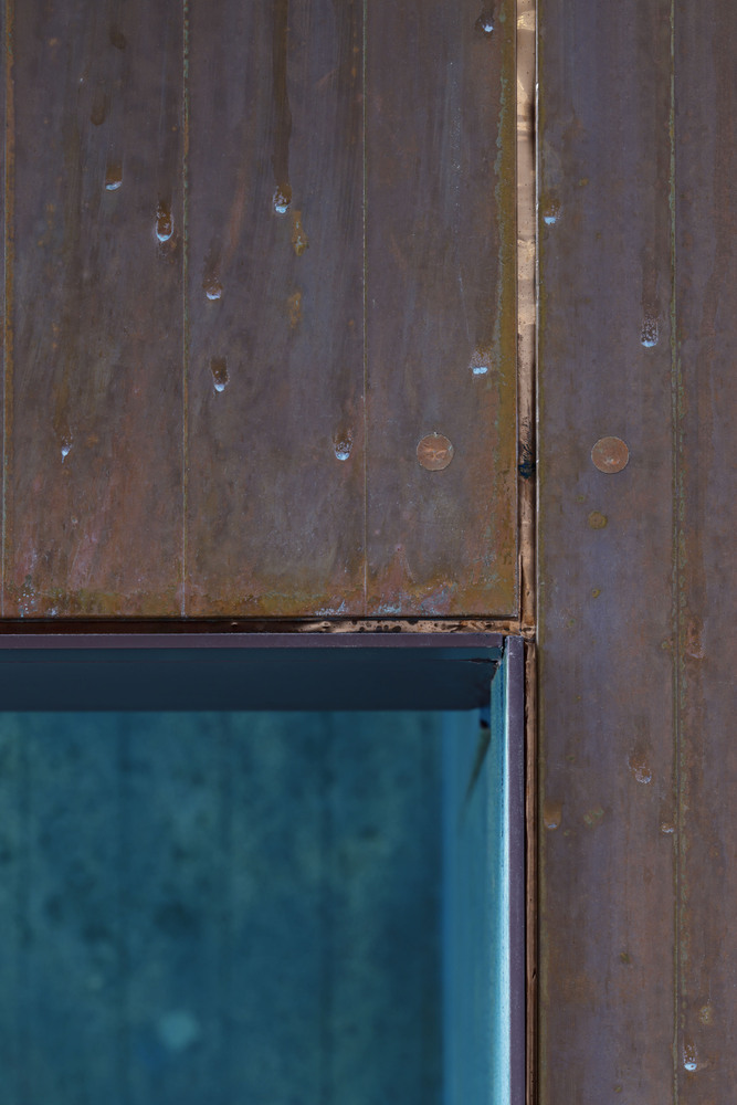 铜锈色用于两个区域:面向交叉路口的引人注目的一侧,以及休息区域。城市景观法规控制除天然材料外的立面颜色的使用。这些颜色的使用得到了当地政府的允许,因为它不是上漆的,而是通过铜的氧化产生的。我们充分使用酱油让铜慢慢腐蚀,产生红棕色,并使用氯化铵让铜快速腐蚀,产生铜绿颜色。