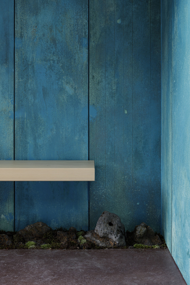 尽管平面布局几乎是自动决定的,但设计师不得不花更多的时间来处理立面。G architects studio决定研究垂直面——无论店铺的内部和外部如何——并努力通过化学方法来控制铜的老化。G architects studio将铜箔贴在墙上,并用酱油和化学品将其氧化。这样做是因为设计师希望外墙看起来适合SUETOMI在京都成立已久的糖果店,并赋予其锈色古铜色,这让人想起SUETOMI的企业颜色“Suetomi blue”。
