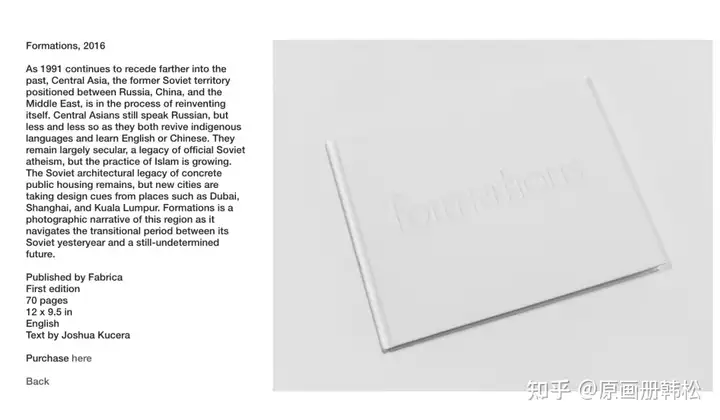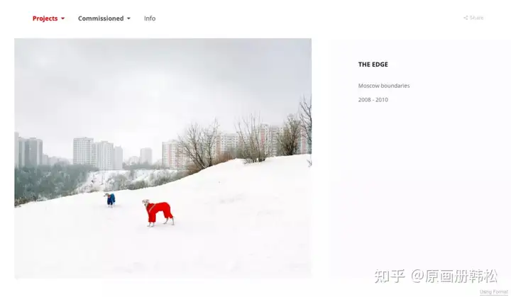 Alexander Gronsky的网站非常简洁,图片与传统网页的瀑布流不同,采用左右切换的形式,让人在观看时更像是在翻阅一本画册。个人项目与委托项目分类清晰,每个项目中的作品数量很多,创作脉络一目了然。