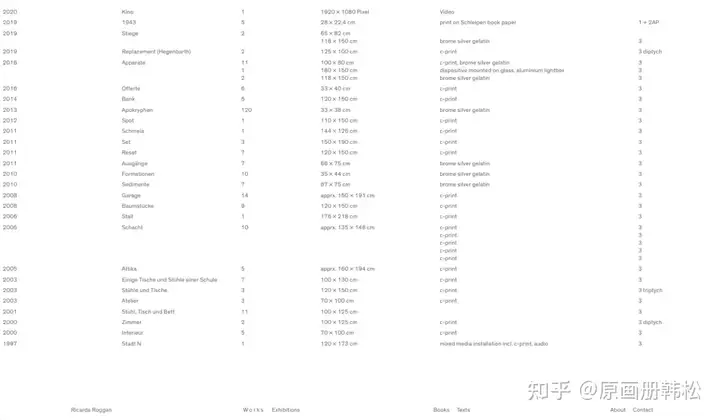 网站交互做得不错,随着鼠标移动,背景会出现作品展示。从1997年至2020年的作品都给予了呈现,从早期狭小局限的空间,到后来物体与空间关系的探索,我们能看到Ricarda Roggan成长的轨迹,看到她是如何一步一步摆脱语境限制创作至今。