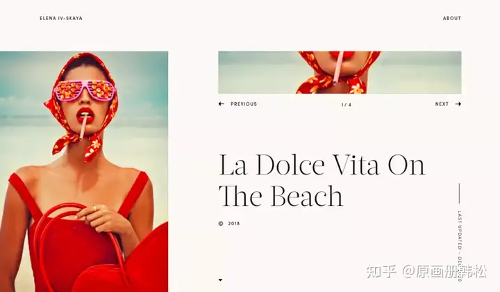 作为时尚摄影师,Elena lv-skaua的网站设计很具观赏性。虽然不像艺术摄影那么强调项目感,但她独特的视觉和品味却能为商业摄影师带来启发。而普通摄影爱好者,通过观看她的网站,也能掌握一些色彩上的运用。